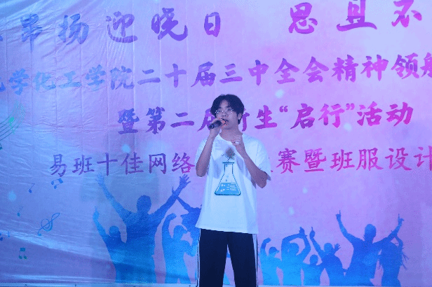 11月23日晚,化学化工学院于白云校区D1小礼堂举办了 “壮志昂扬迎晓日,思且不止绘青春”——化学化工学院第二十届三中全会精神领航系列活动暨第二届新生“启行”活动,活动囊括易班十佳网络班级大赛与班服设计大赛。参与本次活动的有化学化工学院辅导员,校易班学生工作站代表,团委学生副书记团、学生会主席团、新闻中心主任团以及全体2024级学生。