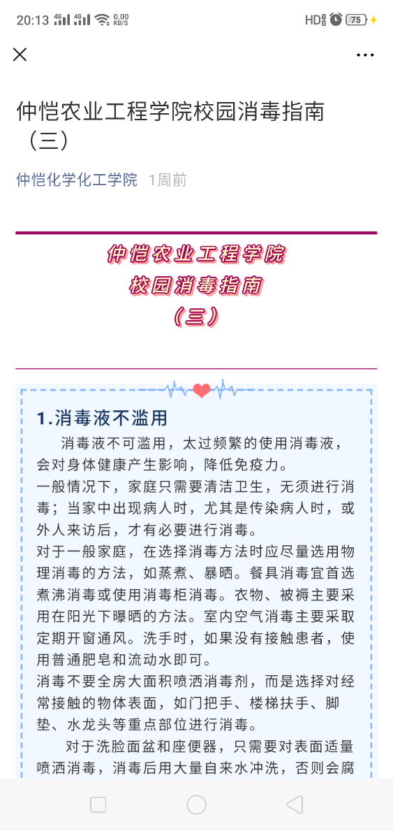 我们所学专业有什么作用?抗疫期间,我们用专业知识给学生上来一堂科普课。学院实验室教师运用专业知识,撰写了“仲恺农业工程学院消毒指南”,普及消毒剂科普知识,帮助大家规范使用消毒液。另外,我们所学专业在防护服涂层、护目镜防雾等方面均可以发展重要作用,由此坚定学好专业的动力和信心。