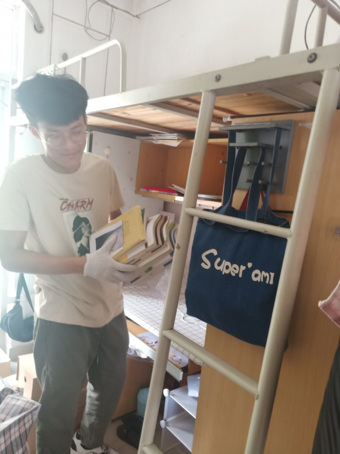 7月1日早上8点,志愿者分成打包组和搬运组,开始了有条不紊地搬迁。打包组的志愿者每人承包了5-6名同学的行李整理,他们分类归置、标注事项、粘贴标记、划区打包,每一个过程都小心谨慎、认真负责。搬迁组的志愿者成为了“流动的小红帽”,顶着骄阳,推着行李,无数次往返于1栋、10栋和17栋。志愿者们不惧酷暑,发扬不怕苦、不怕热、不怕累的精神,整的整、扫的扫、搬的搬,干的热火朝天,尽管脸上满是汗水,衣衫湿了又干,干了又湿,志愿者们丝毫没有因为天气炎热,影响他们清理、搬运的脚步,楼上楼下,校道奔忙的志愿者们组成了校园最美风景线。
