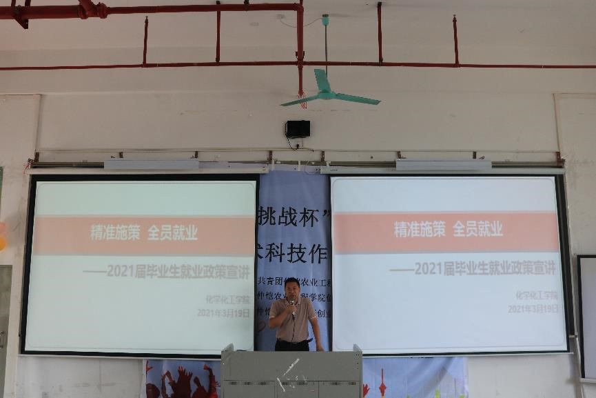 3月19日上午,化学化工学院于白云校区D2小礼堂举行了就业政策宣讲会。化学化工学院党总支书记邱树华、院长舒绪刚、党总支副书记严丽纯、副院长冯光炷、辅导员刘亚宁、李珊珊、化学化工学院17级以及18级学生参加了本次会议。