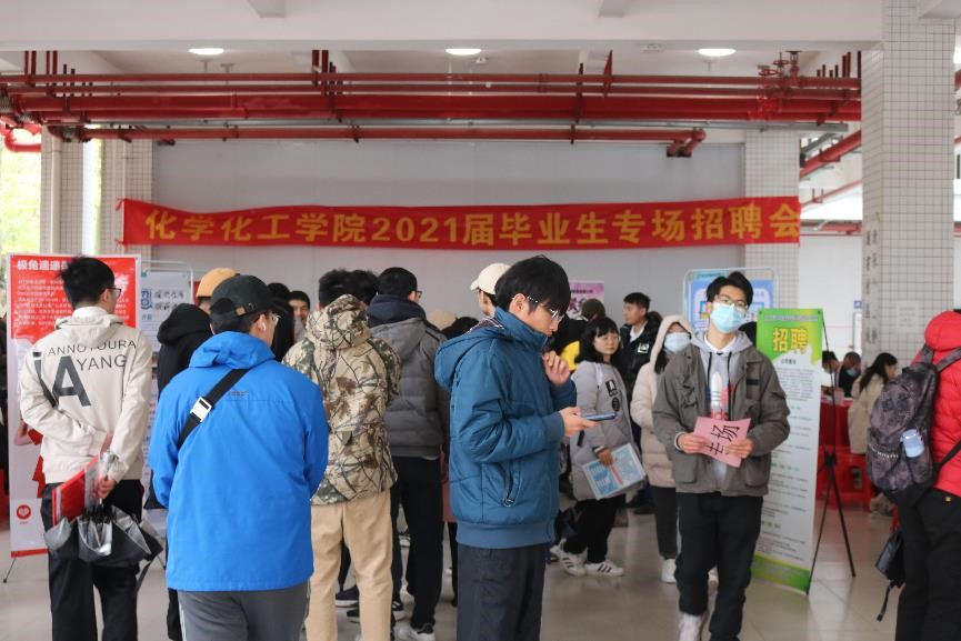 1月11日中午,化学化工学院于综合教学楼架空层举行教育类企业招聘会。为了更好地了解企业情况与2021届毕业生招聘情况,化学化工学院院长舒绪刚、党总支副书记严丽纯、辅导员王正梅、刘亚宁、徐冠东、李珊珊、梁开华莅临本次受聘会作详细了解。