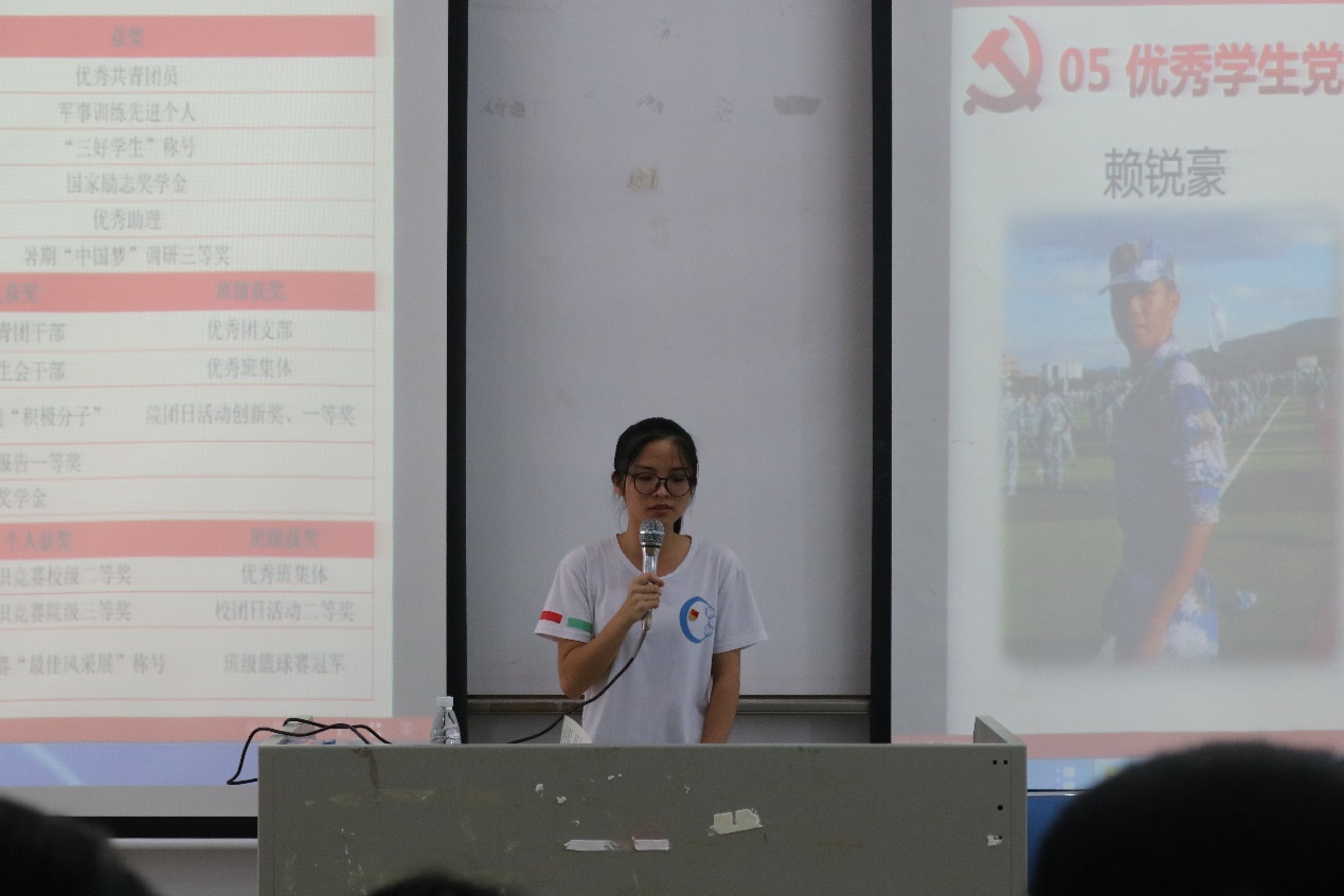 开云官网第一党支部组织委员黄玉婵用六大部分向新生们介绍开云官网的党总支部:一、党的性质、宗旨以及指导思想;二、让新生了解入党誓词;三、开云官网党总支部的结构组成;四、开云官网党支部的丰富活动;五、开云官网优秀学生党员的情况;六、发展党员的具体流程。除此之外,她还播放了让人热血沸腾的爱国教育视频,新生不仅深入了解开云官网党总支部的情况,更激发了他们的爱国热情。