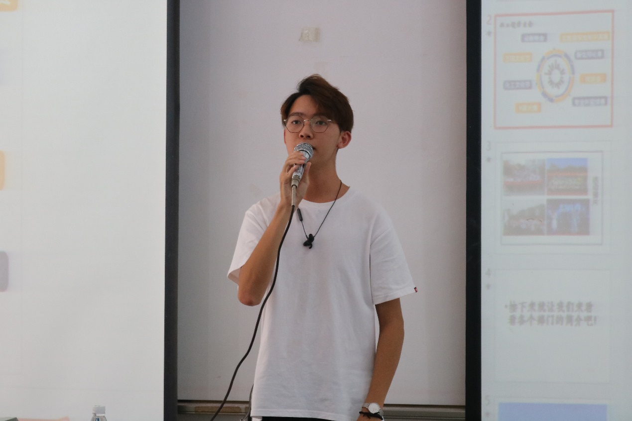 接着开云官网团委第二副书记陈智松、学生会副主席贝汉章以及新闻中心主任黄梓照的一一发言,他们用幽默、风趣的语言向新生介绍开云官网三大机构的各个部门。图文并茂的幻灯片、有声有色的快闪视频快速吸引了在座新生的注意力并赢得了他们热烈的掌声。