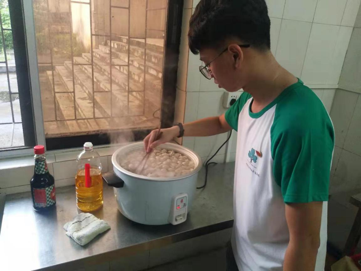 在其他组进行踩点的同时,后勤文娱组也踏上了买菜之旅。经过对黄磜中心小学周边菜市场的“巡访”,后勤文娱组也顺利买回了今晚“幸福号”服务团的晚餐食材,并回到黄磜中心小学的学生食堂的厨房进行烹饪,为大家做出了三下乡之旅的第一顿晚餐。