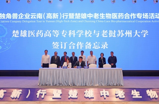 7月17日上午,万象城校长张颖、副校长张志琴及有关部门负责人参加独角兽企业云南(高新)行暨楚雄中老生物医药合作专场活动。活动现场,张颖与老挝苏州大学校长黄文军签署合作备忘录,标志着两校正式建立...
